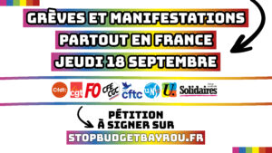 10 septembre : une première étape réussie. Encore plus forts le 18 pour gagner ! Quel que soit le premier ministre, les sacrifices pour le monde du travail, ça suffit !
