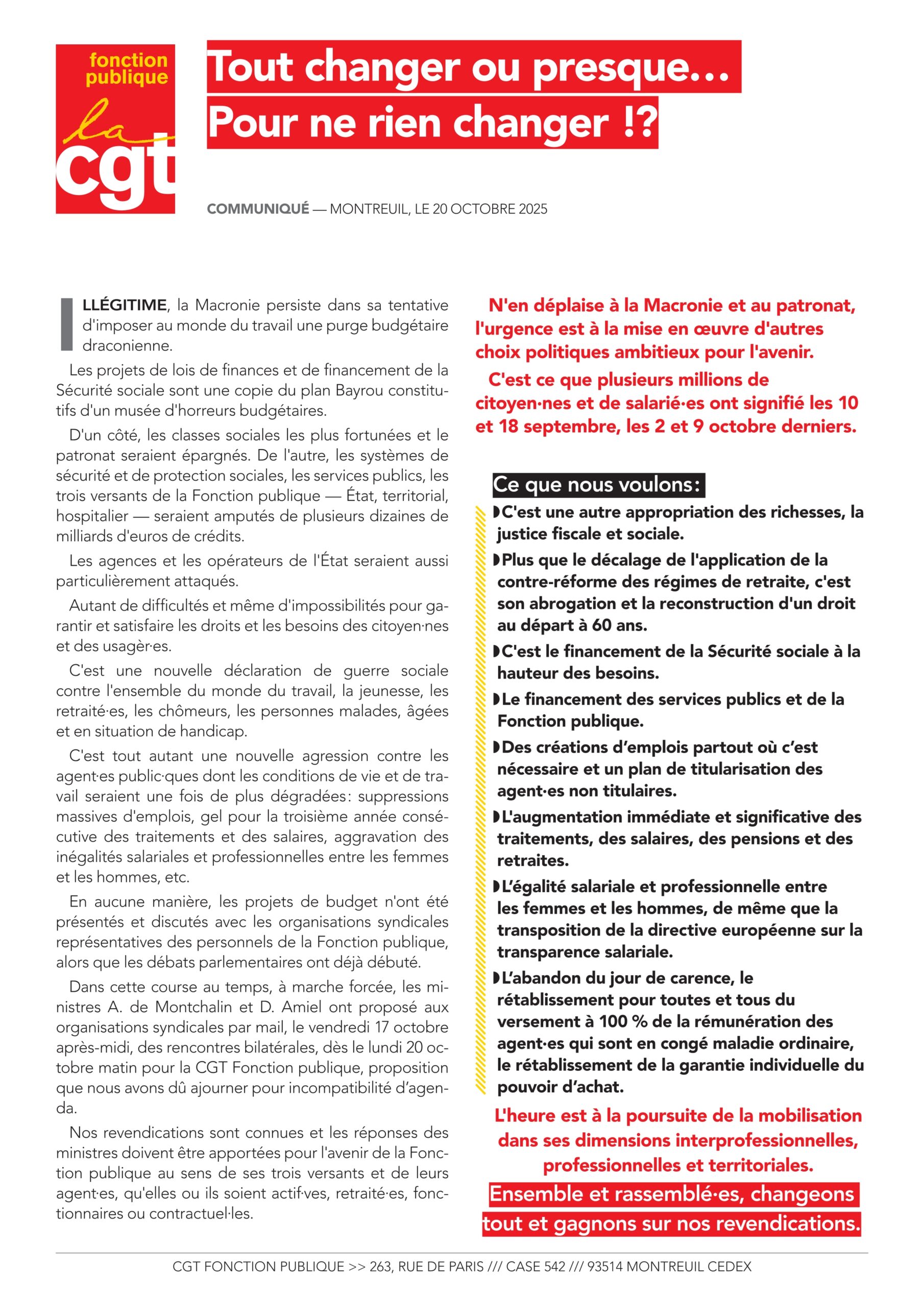 Avec la CGT des territoriaux de Lille-Hellemmes-Lomme, toutes et tous uni.es pour défendre nos droits et en gagner de nouveaux ! 22 octobre 2025 Mis en avant